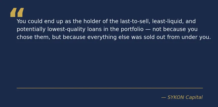 Why it matters: Funds sell the most liquid, highest-quality loans first because those are the ones they can move near par. What leaves the portfolio tells you more about what stays than any fund fact sheet will. If the best paper is already out the door, remaining investors may be holding a fundamentally different book than the one they bought into.